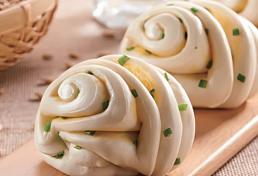 Het product is een professionele en efficiënte productielijn voor het snijden van gestoomd brood, gestoomde broodjes en andere producten.